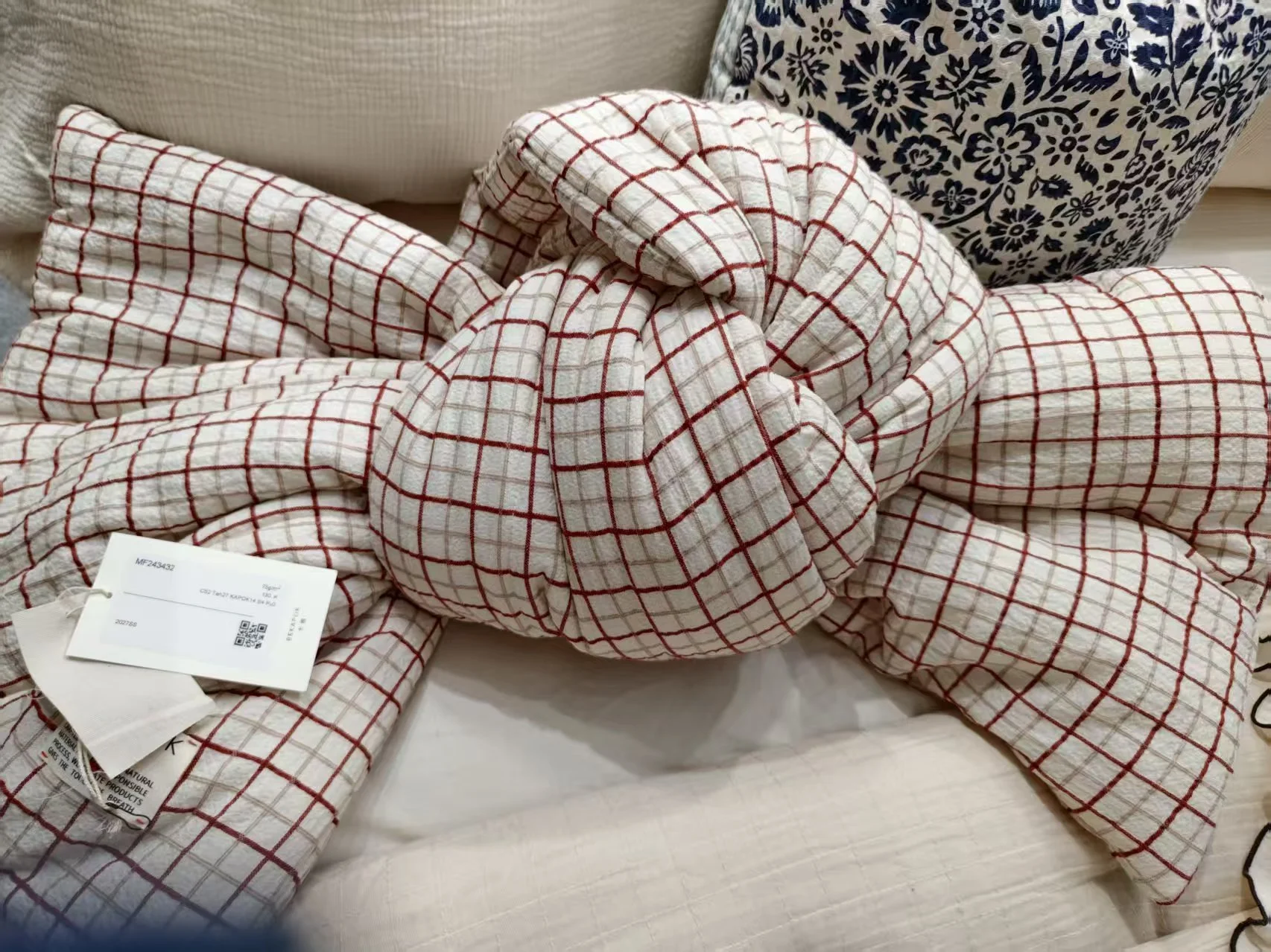 The items shown are demonstration pieces created to illustrate how our materials can be applied in home textile products.